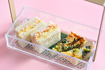 - 桜えびとたまごのサンドイッチ — 桜風味のクリームチーズを白パンでサンド