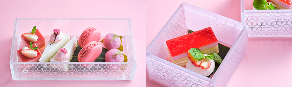 淡いピンクや白を基調とした華やかで繊細なスイーツをお楽しみください。
